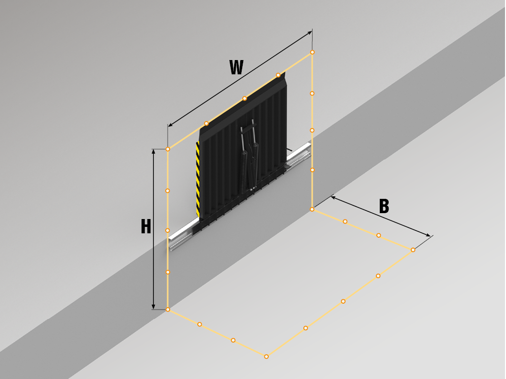 车轮导向装置旨在确保车辆快速准确地停靠在装卸口,并保护门封和建筑物墙壁免受损坏。导向装置的设计旨在最大限度地减少与车轮轮辋的可能接触。它们是直径为 159 毫米的钢管,带有用于固定的弯头。基本颜色为 RAL2004,也可以根据 RAL 色卡涂上任何颜色或采用热浸镀锌处理。导向装置通过两种方式安装在装卸口前的场地上:使用地脚螺栓或通过混凝土浇筑。