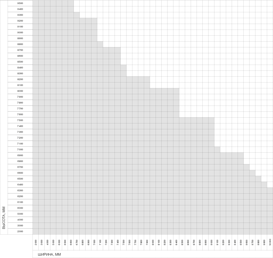 | 长度,毫米 | 门板包装 - 从 2,100 到 10,100 |
