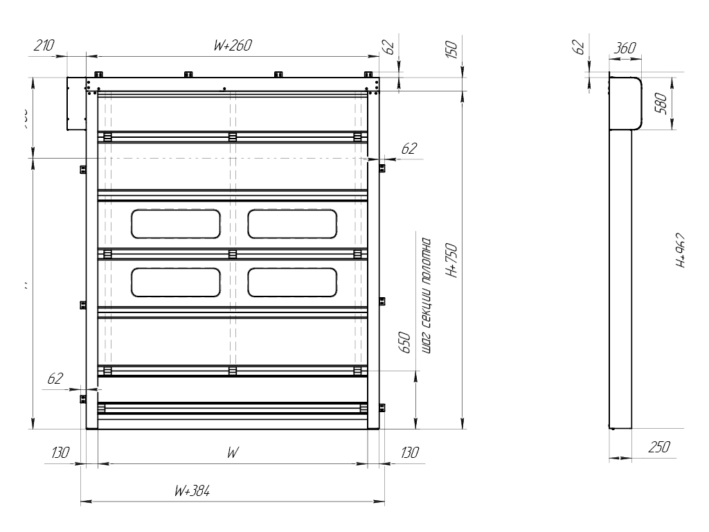 | Wind load, Pa | CLASS3 | for doors up to 5 000 mm wide |