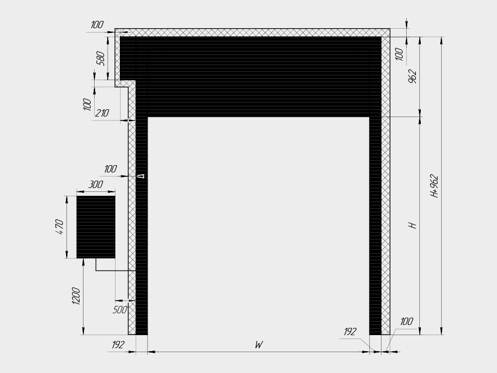 | Opening speed, m/s | 1.0 | for doors up to 5 000 × 5 000 mm |