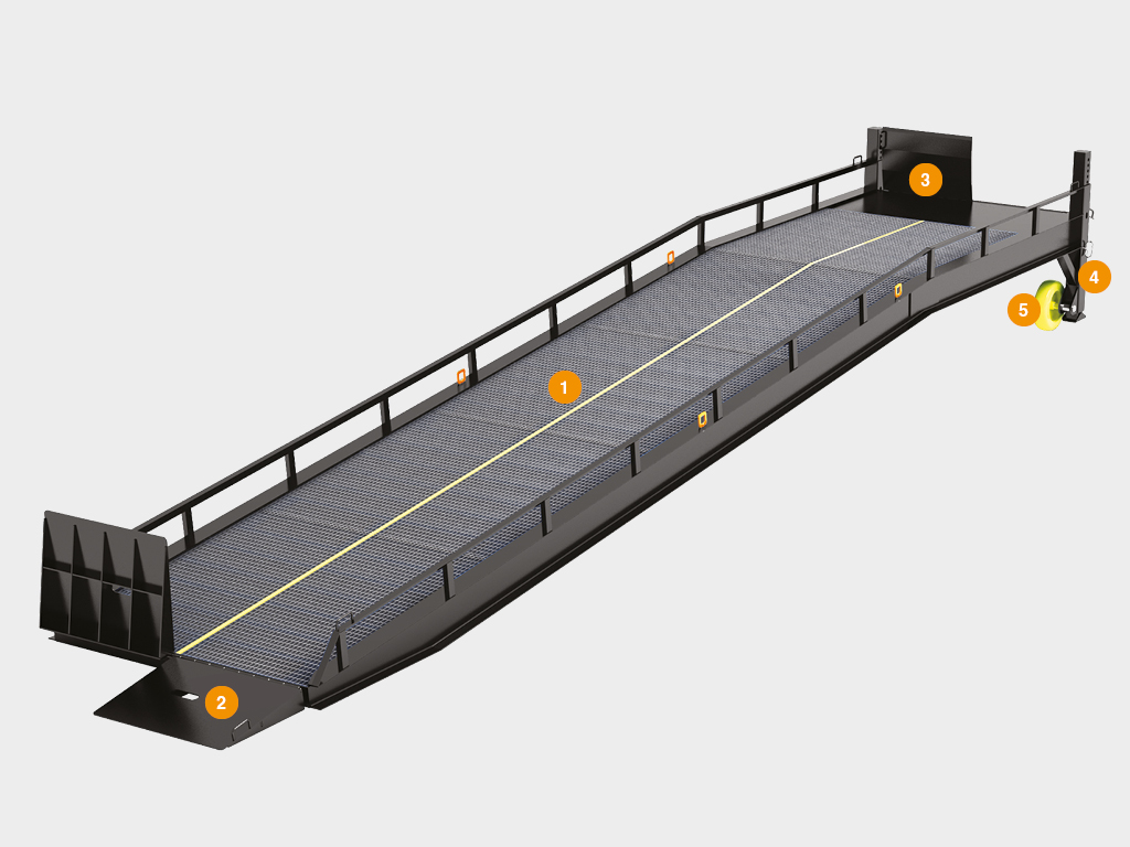 DoorHan mobile yard ramps can only be used with fork lifts having inflatable wheels. Don’t drive hydraulic trolleys and loaders with polyurethane wheels having high point load onto the ramp.